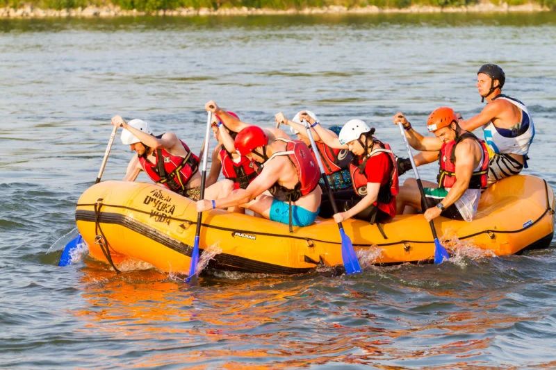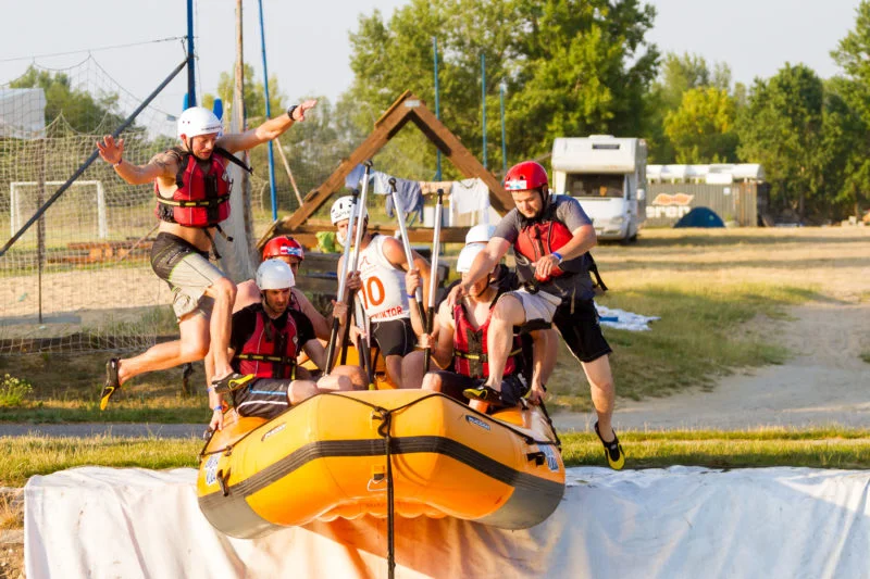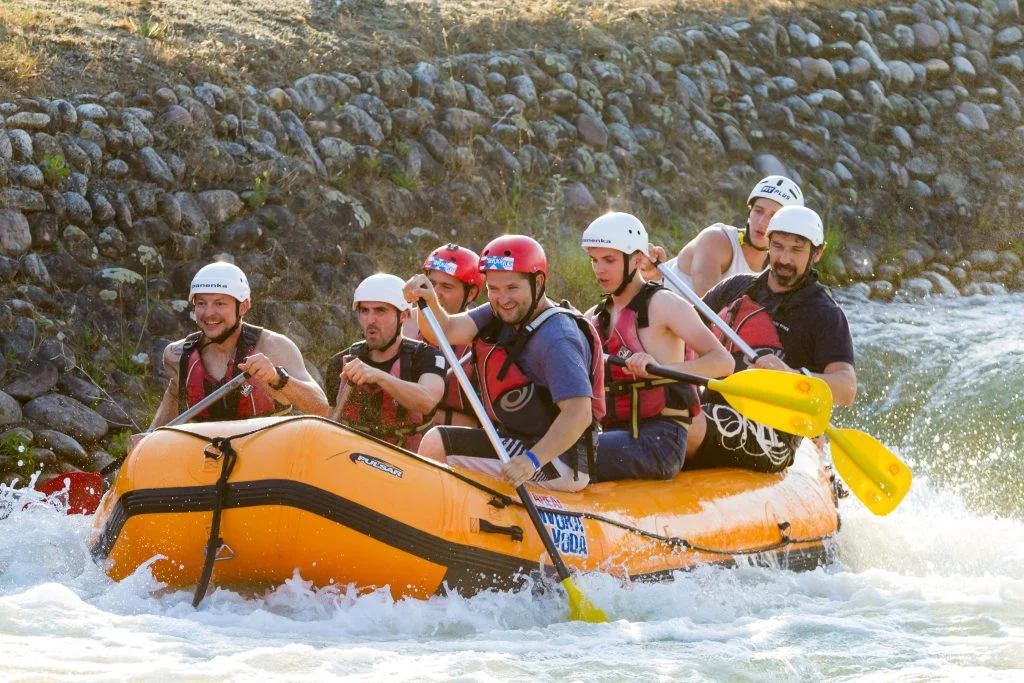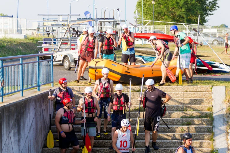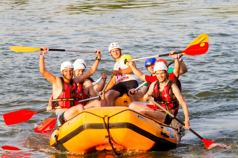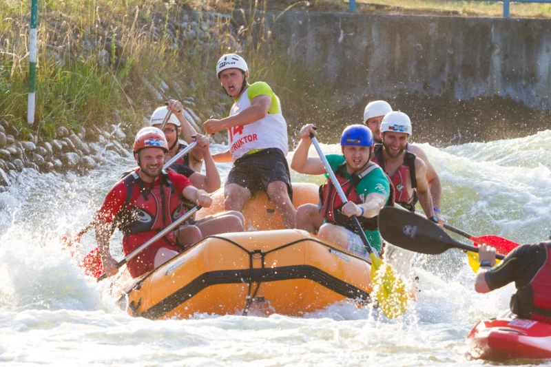 Ako vždy, organizačný tím zabezpečil maximum pre to, aby sme sa cítili čo najpríjemnejšie a nič nám nechýbalo. Vonkajšie posedenie na lehátkach, úkryt pred slnkom pod stanom, občerstvenie prostredníctvom limonád, čapovaného piva a samozrejme dobroty pod zub v podobe švédskych stolov. Po posilnení sa rozdeľujeme do tímov, prezliekame do športového oblečenia a onedlho nasadáme do raftov. Inštruktor nám vysvetľuje základné pokyny a správanie sa v člne.