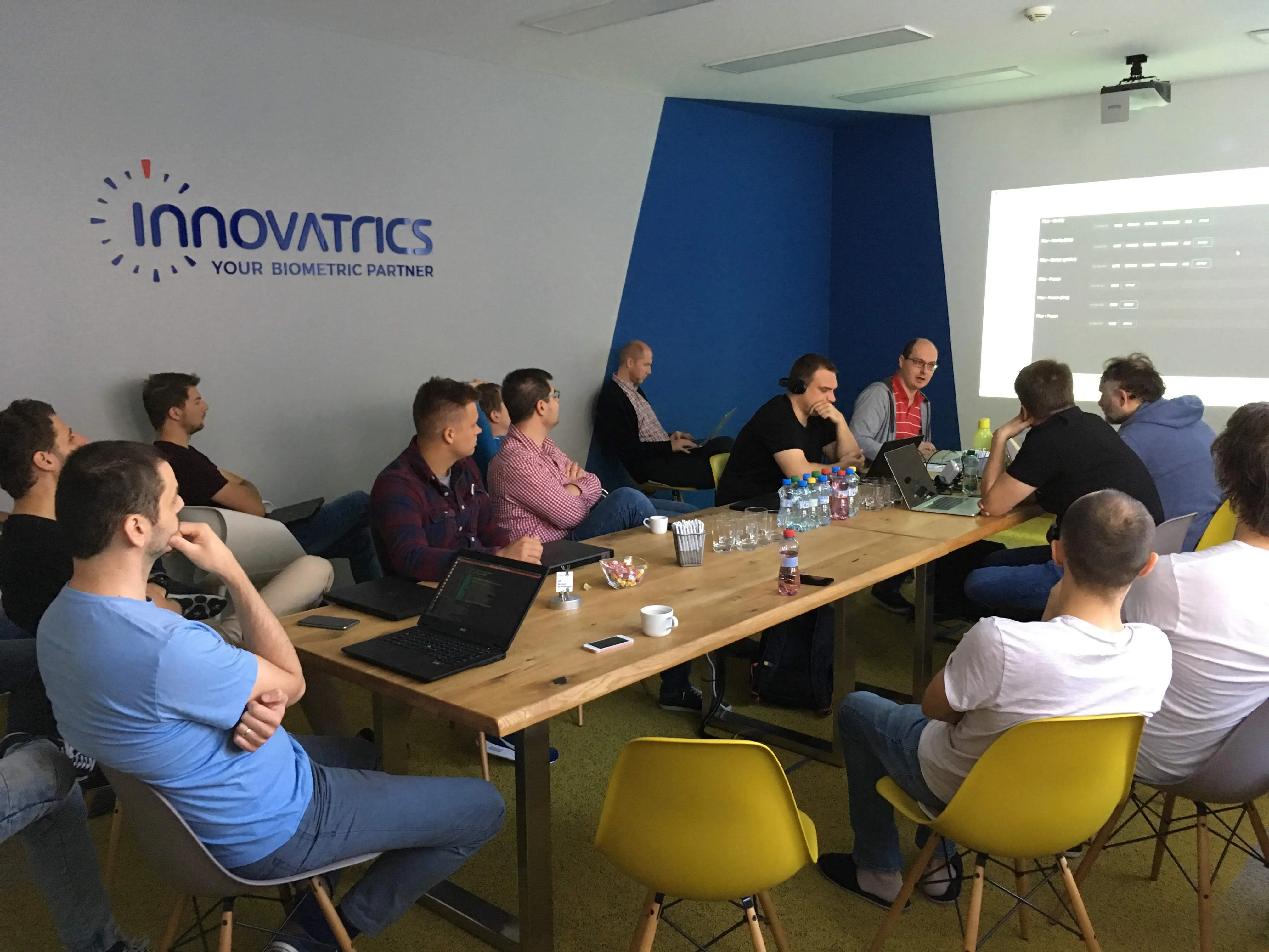 „Povedali sme si, že chceme pomôcť ostatným tímom robiť front-end modernejšie a zároveň cielime na to, aby sa príbuzné tímy od seba učili“, dodáva Jozef, softvérový architekt zodpovedný za organizáciu NU v Innovatrics.