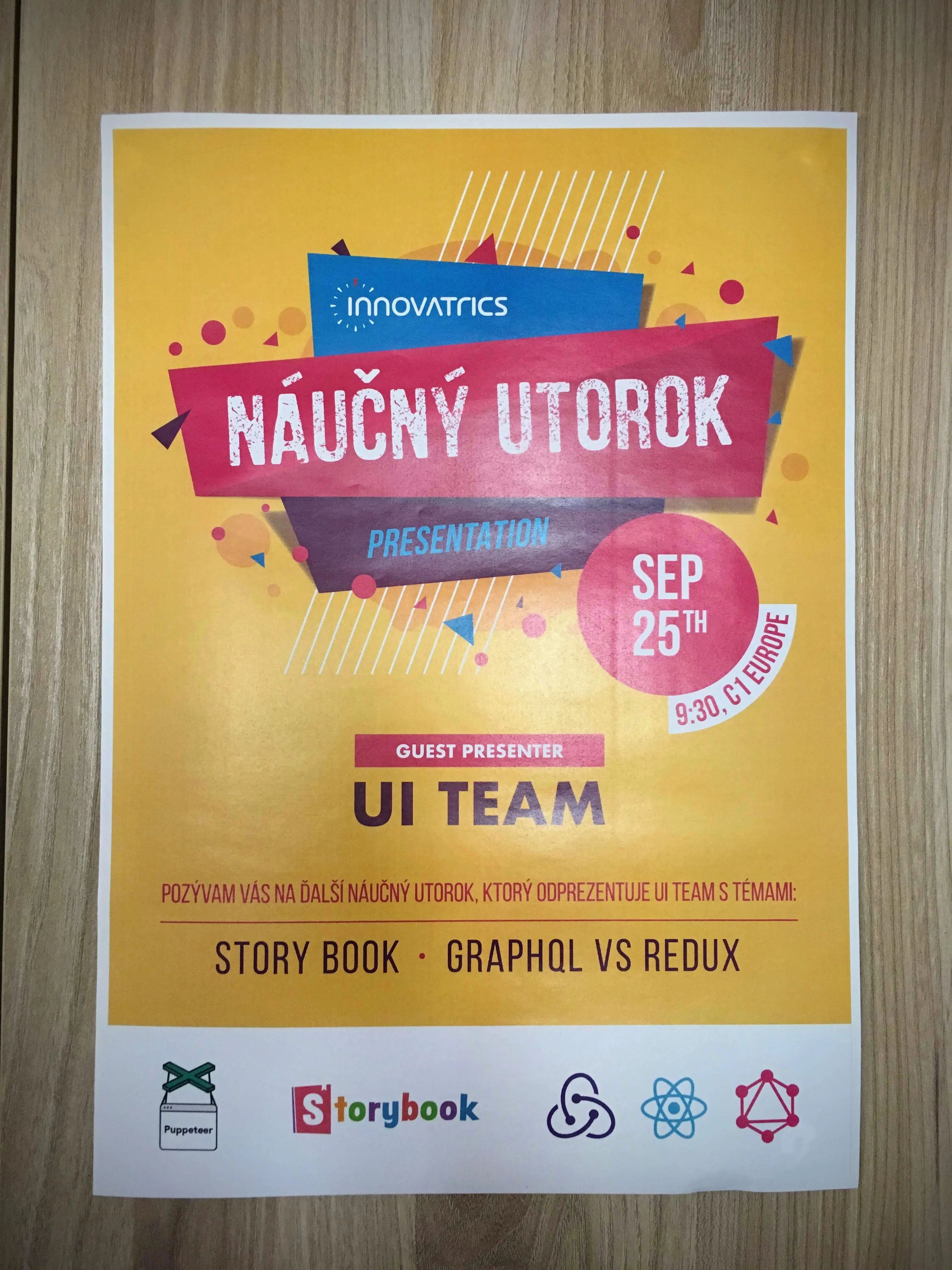 Na minulotýždňovom náučnom utorku sa so skúsenosťami podelil Dušan z UI tímu. V prvej časti sme rozprávali o kompletnom využití „storybookov“ a v druhej polovici sme si posvietili na best practices, Redux, GraphQL a konkrétne prípady využitia jednotlivých frameworkov.